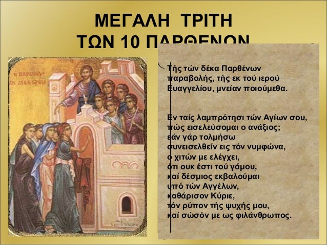 Των δέκα παρθένων (Ματθ. 25,1-13) που μας διδάσκει να είμαστε γεμάτοι