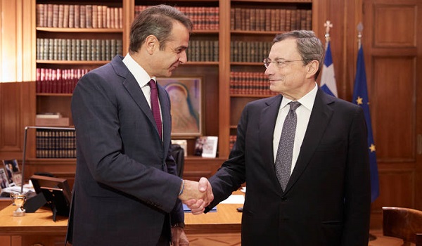 συνάντησης που είχε ο πρωθυπουργός Κυριάκος Μητσοτάκης με τον απερχόμενο πρόεδρο της Ευρωπαϊκής Κεντρικής Τράπεζας, Μάριο Ντράγκι στο Μέγαρο Μαξίμου.