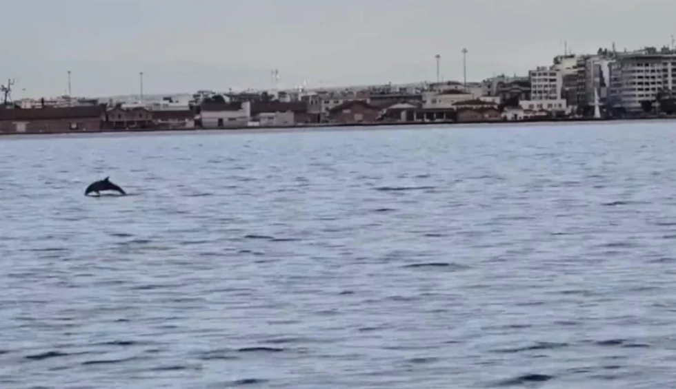 Όμορφο θέαμα πρόσφεραν δελφίνια το πρωί της Παρασκευής στους περαστικούς στη Νέα Παραλία της Θεσσαλονίκης.