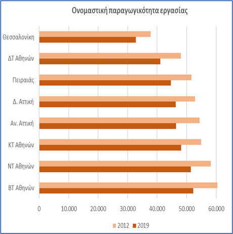 Είναι πριν από 20-25 χρόνια που η πόλη έχασε τα μισά εργοστάσια της και έμεινε με μια μισο-άδεια Βιομηχανική Περιοχή, άναρχες επαγγελματικές συγκεντρώσεις και εκατοντάδες βιοτεχνικά κτίρια εκπλειστηριαζόμενα σήμερα προς malls, logistic centers, Airbnb, και η παραγωγικότητα έφτασε να είναι 30% έως 60% χαμηλότερη από ό,τι σε οποιαδήποτε περιοχή της Αττικής.