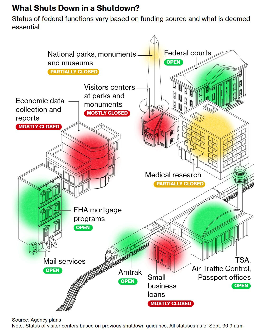 Εάν το κλείσιμο διαρκέσει τρεις εβδομάδες, το ποσοστό ανεργίας θα μπορούσε να αυξηθεί στο 4,6%-4,7% από το 4,3% του Αυγούστου, καθώς οι εργαζόμενοι που βρίσκονται σε άδεια θεωρούνται προσωρινά άνεργοι.